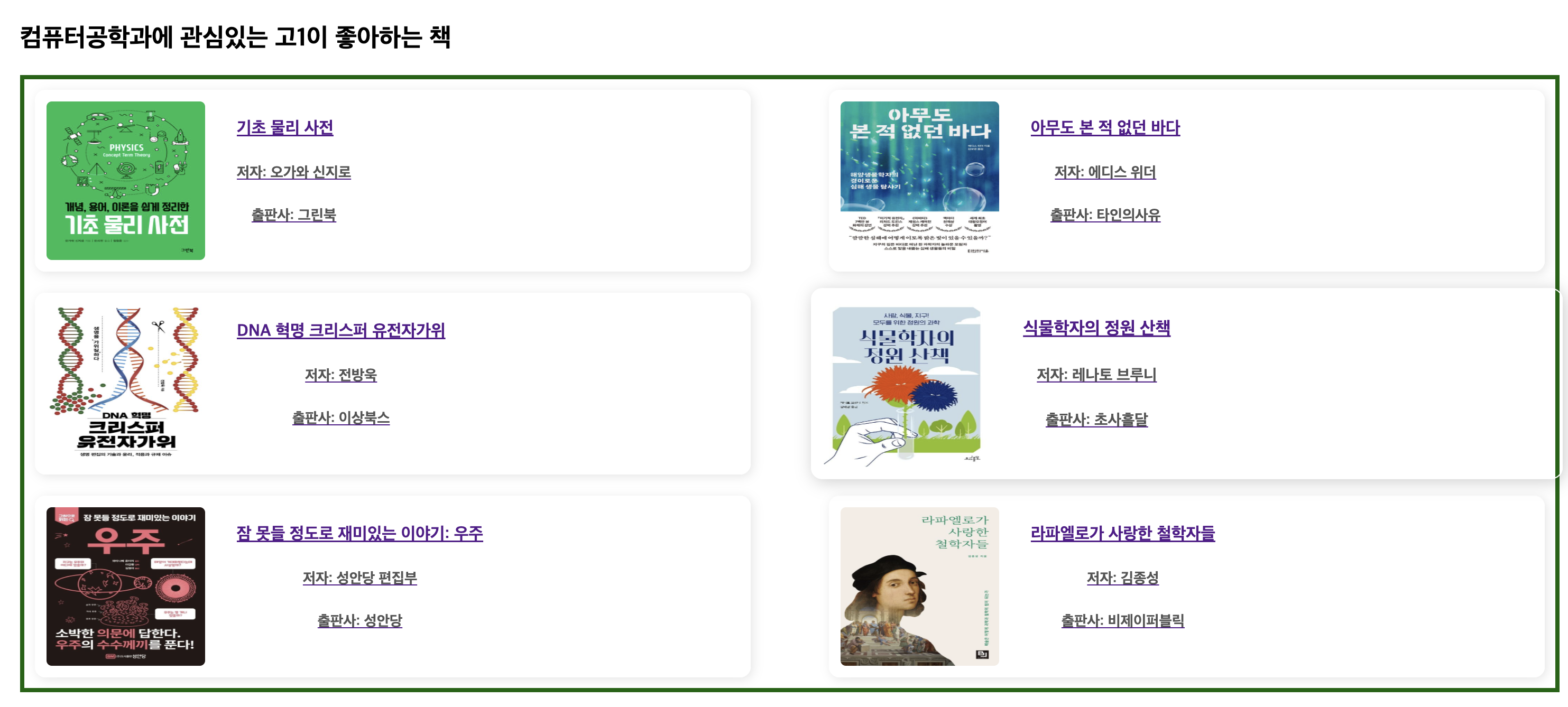 마지막으로 도서와 전공 유사도를 반영하여 순서를 정렬하였습니다.